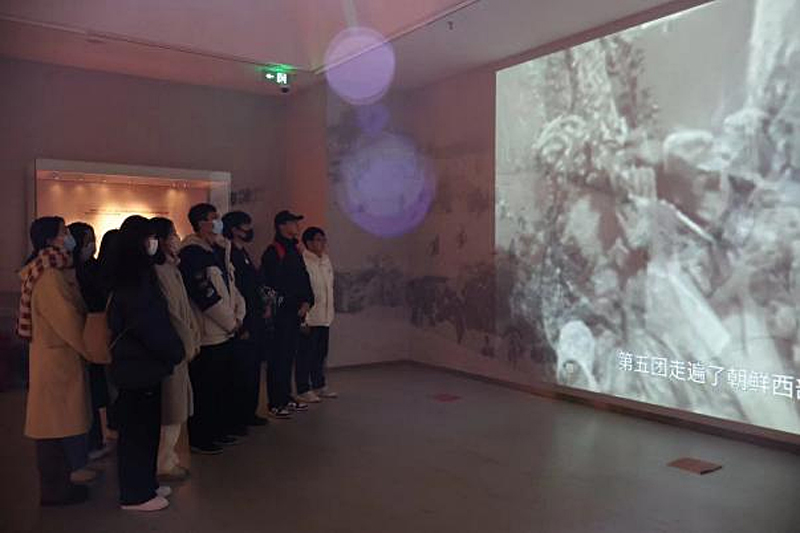 随后,全体成员参观了“胜利的鼓舞者——陕西历史博物馆藏抗美援朝文物展”,展览分为响应号召、千里慰问、万里同心、亲密友谊及伟大胜利五个部分。在抗美援朝战争胜利70周年之际,以赴朝慰问团的视角展开,讲述了朝鲜战争时期西北人民在抗美援朝运动中所作的贡献以及对前线将士的全力支持。通过展厅内的历史图片、文物和主题场景,生动展现了中国人民积极投身抗美援朝运动与朝鲜人民并肩作战的英雄事迹,展现出正是由于中国人民志愿军、中国人民万众一心团结一致,才取得了这次以弱胜强的伟大胜利,锻造了跨越时空、历久弥新的伟大抗美援朝精神。