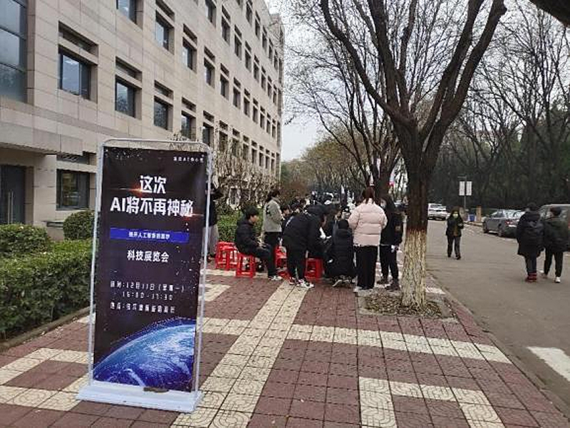 为了增加对人工智能技术的了解和认知,激发更多同学对AI的关注与思考,能够近距离通过互动的方式体验和感受AI的魅力,12月11日下午,ok1122诸侯快讯团委科创AI中心携手智能科学与技术专业部分同学骨干,在综合楼前道路两旁,开展了题为“这次,AI将不再神秘”的科技展览会。