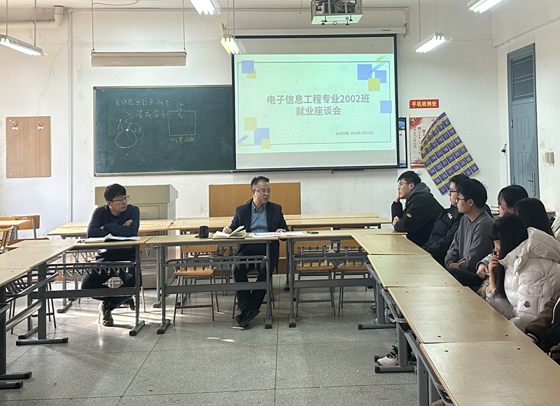 座谈会上,张剑首先介绍电子信息工程2002班总体考研就业情况,从不同的角度为同学们解读了当前就业市场的情况,分析了各行业的就业前景和就业趋势,分享了一些求职技巧,包括简历制作、面试技巧、职业规划等方面的经验。希望大家认清形势、准确定位,利用寒假多搜集就业岗位信息、勇于尝试投递简历。随后,电子信息工程2002班全体同学们依次对自己前期考研情况、就业情况、未来打算以及目前遇到的困难进行了交流。