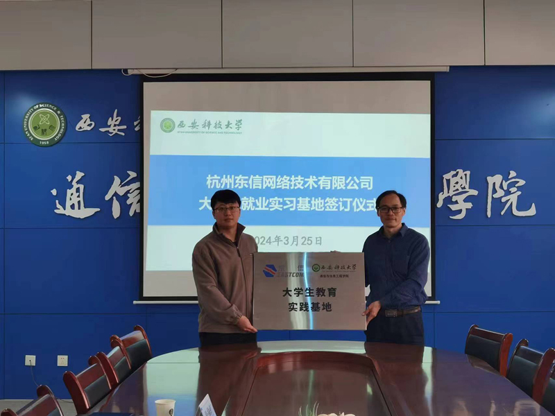 座谈会后,张剑代表学院向杭州东信网络科技有限公司授牌“大学生教育实践基地”。双方还就项目申报、实习实践、产学研深度合作、实践育人平台共建等方面进行了深入的交流。