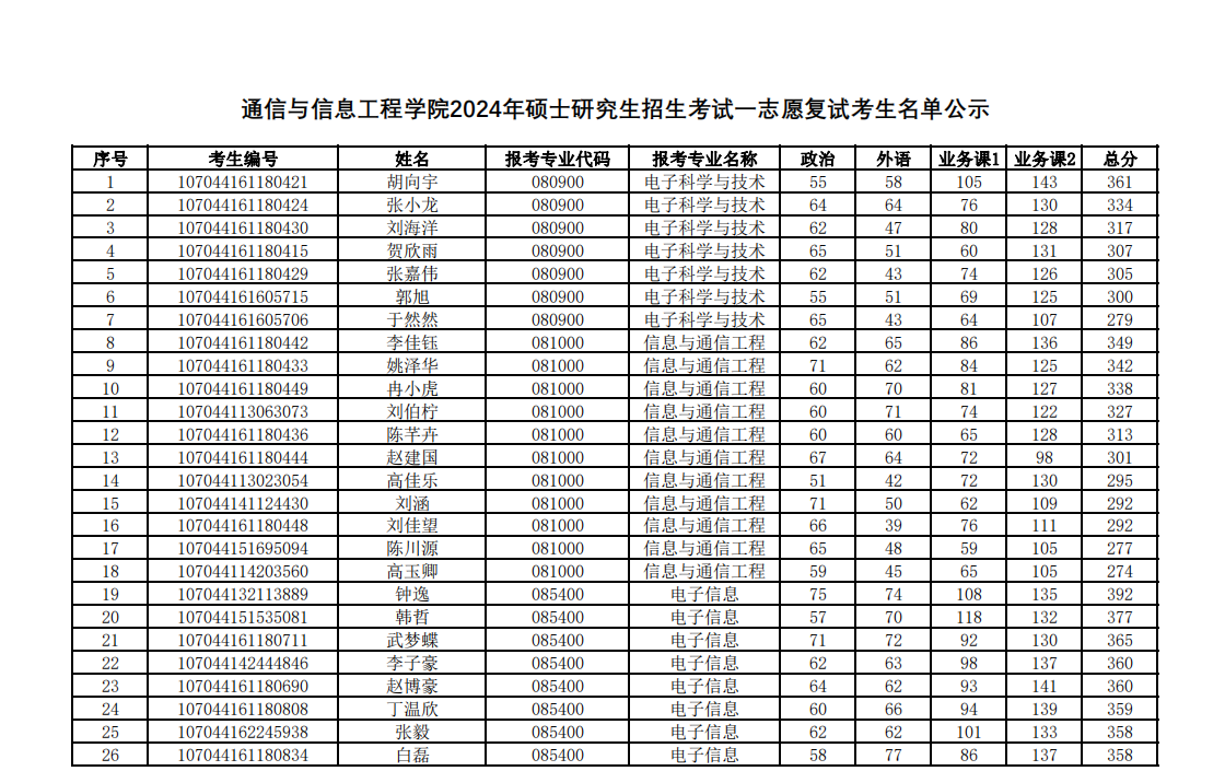 关于2024年硕士研究生招生考试一志愿复试考生名单公示