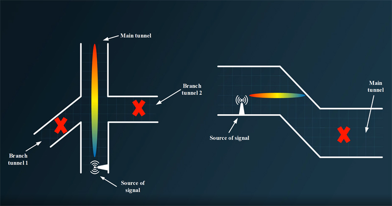 在矿井通信应用中,黄晓俊教授团队充分利用其技术特点,有效破解井下巷道中5G通信的诸多难点和痛点。针对多径效应导致的信号盲区和严重衰减,团队通过控制信号的相位和幅度,优化多路径传播,对巷道盲区进行信号中继和补盲,提高通信的质量和稳定性。针对智能矿井环境中存在强电磁干扰,团队研发针对矿井环境的能量选择超表面消除外部电磁干扰,提升通信信号的传输和接收质量。经过长期研究与实践,团队率先研发出适用于矿井5G信号中继和补盲的900MHz2.1 GHz3.5 GHz的适用于矿井5G通信全覆盖的智能超表面,做到“随挂随取、随时补盲”。团队更创新实践了智能电磁超表面定向加强信号技术,成功将5G核心网下沉至5300米超长斜井井底,做到了矿井建设全周期5G信号的100%全覆盖。