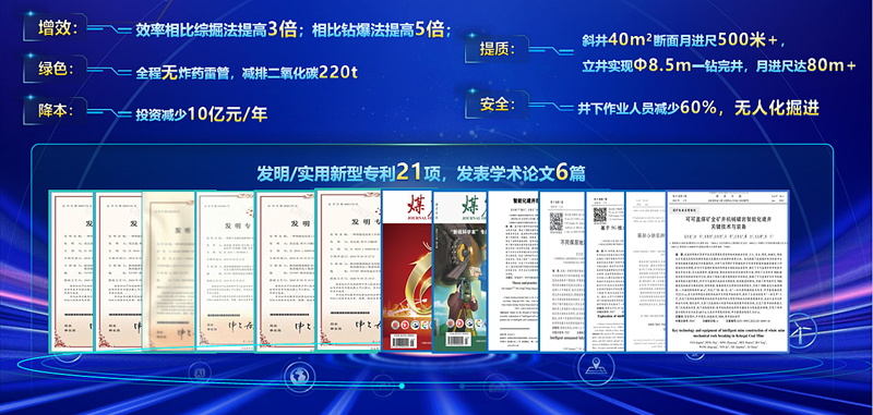 团队的技术创新得到了社会和行业的良好反馈。在工信部主办的第五、六届“绽放杯”5G应用征集大赛中,团队的以此新技术研发形成的申报成果《“打井不下井”,开启延长石油煤电油化复合场景5G+网业融通新篇章》获得全国一等奖,《以“融”引领,以“安”保障,以“智”点亮,可可盖迈向“煤”好未来》获得全国总决赛金奖,成为能源领域唯一、陕西省唯一获得的全国总决赛金奖的项目。在新疆、榆林、延安等地的煤矿实验与建设实践中,方案所表现出的技术效能令人赞叹。基于此技术突破,煤矿建井效率相比传统施工法提高3-5倍,井下作业人员减少60%,极大提升了无人化掘进的工作水平,完善了煤矿智能化全生命周期的示范建设。如今,黄晓俊教授团队更向技术前沿不断探索,将智能电磁超表面技术与射频漏缆通信技术相结合,旨在为薄煤层绿色智能开采领域的技术革新再立新功,誓把科技创新做在祖国大地上。