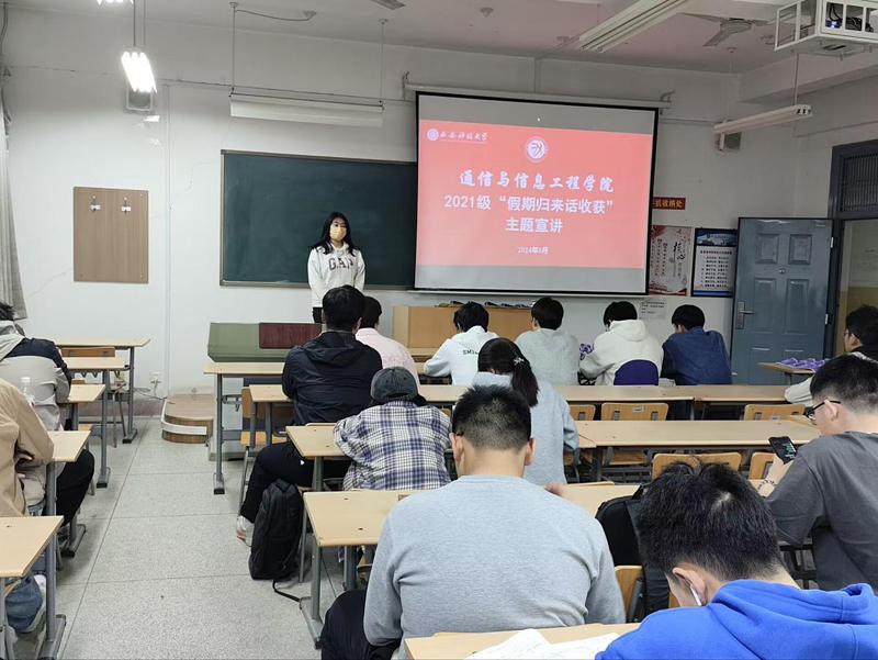 为进一步落实学习贯彻习近平新时代中国特色社会主义思想主题教育,践行党的二十大精神,更好发挥党员的先锋模范带头作用,2021级本科生党支部假期期间积极创新学习形式,将理论与实践相结合,引导支部成员努力在社会课堂中“受教育、长才干、作贡献”。3月28日晚,2021级本科生党支部组织学生党员、入党积极分子深入2023级本科生晚自习教室开展“假期归来话收获”与“榴苑追梦”主题宣讲活动。“假期归来话收获”分享的主题是收获与成长;“榴苑追梦”是由获得国家奖学金、国家励志奖学金的优秀学长学姐们给大家分享学习经验。
