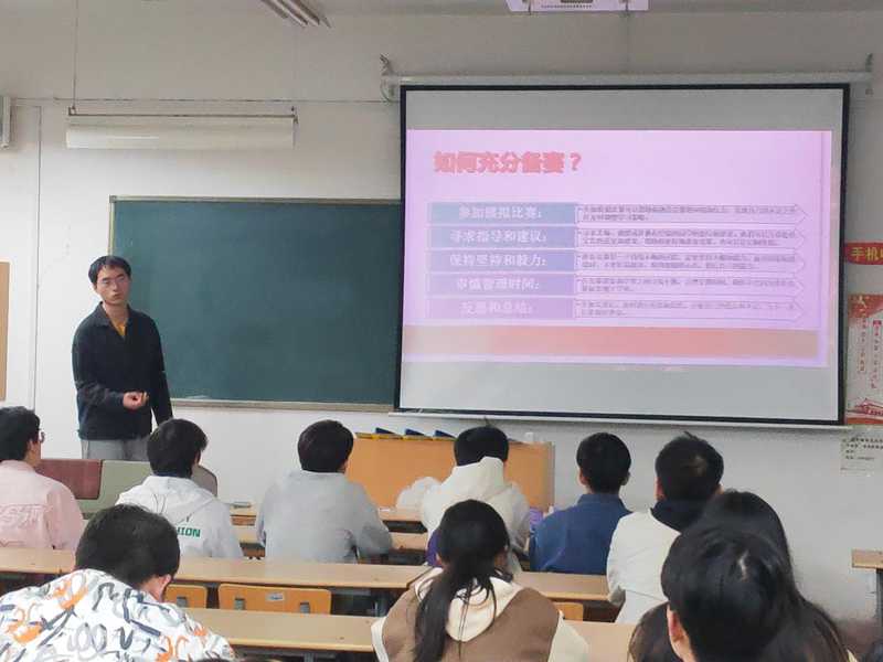 很荣幸参加这次的宣讲活动,做为学姐我给他们讲了四个方面的内容。第一个方面是综测,主要讲了其构成以及怎么获得额外的加分;第二个方面是奖学金部分,讲了奖学金的获得方式以及比例等问题;第三个方面是竞赛部分的,主要讲了数学建模,统计建模,三创等竞赛;最后闲聊了一些考研的话题。希望对他们有所帮助。