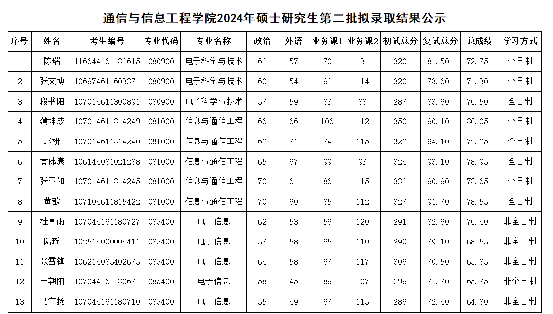 关于2024年硕士研究生招生第二批拟录取结果公示