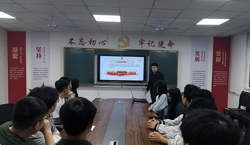 支部教工党员陈嘉轩围绕“国家安全人人有责为主题”,从国家安全的基本常识、危害国家安全的行为及相关罪名、如何维护国家安全、谁来保护国家安全四个方面讲解国家安全的基本内容,警醒大家日常学习生活中要时刻保持清醒头脑,注意安全防范。他指出,在网络安全方面,不得使用vpn翻阅至外国网站浏览信息,严禁在网络散播、发表不当言论;在公共卫生安全方面,应当自觉遵守疫情防控的各项要求,做好自身的安全防护。