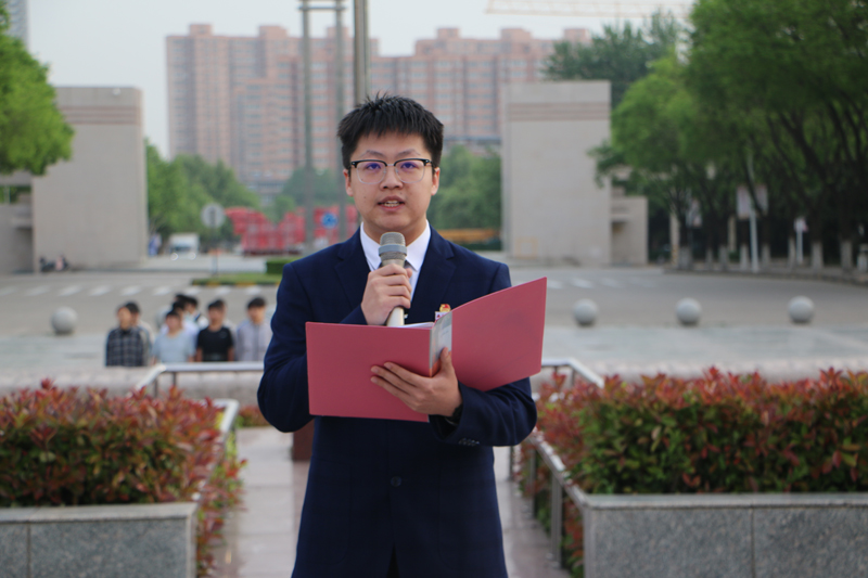 6:45分,全体师生于明德广场列队完毕。学校国旗护卫队队员雄姿英发,迎着朝阳,迈着整齐稳健的步伐护送国旗走向升旗台。《义勇军进行曲》奏响,全体师生们肃立,齐声高唱国歌,向冉冉升起的五星红旗行注目礼。随后学生代表祁浩宇同学进行国旗下讲话,他带领同学们回顾了1840年鸦片战争以后中国历史上的一系列重大历史事件,号召广大青年学生继承和发扬革命先驱的爱国主义精神,勇担青春使命,勤于学习,勇于实践,为将来建功立业打下坚实基础。