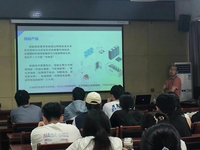 讲座中,贾殷嘉以《工商业储能和EMS系统》为题,从“个人发展历程”“实践中的经验分享”“对学弟学妹们的建议”三个方面深情回顾了在校学习生活经历,并详实细致的讲解了储能概念、种类、工商业储能组成、EMS的作用、应用场景、未来发展等内容,勉励同学们要珍惜美好的在校时光,增长学识,提高能力,为日后毕业走上社会做好充分的准备。在互动交流环节,贾殷嘉对同学们的问题进行逐一解答,现场气氛热烈融洽。同学们纷纷表示本次交流座谈开拓了大家的视野,对专业的发展机遇与挑战有了更深层次的了解,加深了对就业选择的认识理解,对未来职业规划和发展带来了新的思考和借鉴。