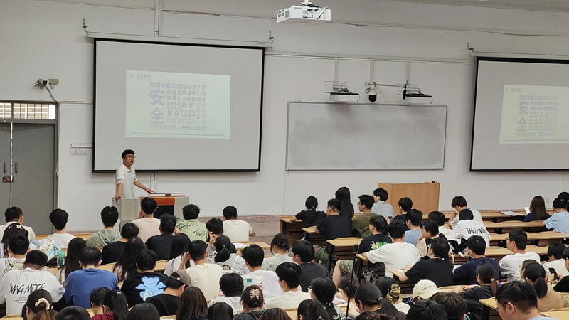 随后,通过列举实际案例,从消防安全、宿舍用电安全、实习安全、国家安全、暑期留校、考研就业历年情况分析、防电信网络诈骗和心理健康教育等方面,引导学生提高思想认识,强化安全意识。同时呼吁同学们要自觉遵守网络道德规范,规范使用网络工具、不发布不良信息、不参与网络暴力等行为,提醒同学们要保护好自己的个人信息和隐私,防止出现网络诈骗和“帮信罪”等不法行为。