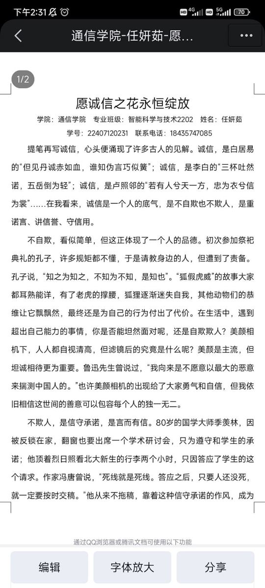 开展创作比赛,加强诚信教育。近日,为营造浓厚的资助育人氛围,全方位展示我们受助学生的成长成才故事,培养学生的感恩之心,切实提升学生资助工作成效和水平,我们积极组织学生参加以“诚信”为主题的短视频创作比赛。参赛选手围绕诚信教育对日常生活、学习的影响,创作“电信诈骗”、“诚信买卖”等题目的优秀短视频。通过真实、动人、鲜活的视频影像,以现实生活、自身故事为题材,以小见大,见微知著,传递了诚实守信的价值观念,具有较强的艺术感染力,用不同的内容向我们传达了同一首诚信之歌。