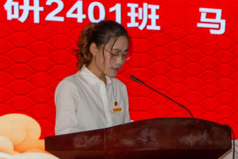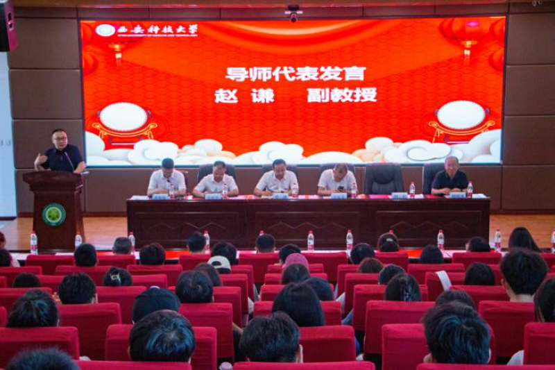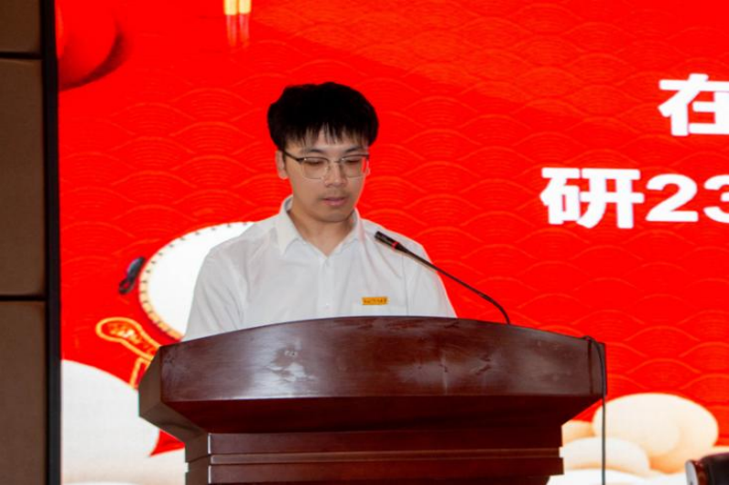 导师代表赵谦在发言中鼓励同学们树立坚定的求学信念,制定科学明确的规划目标,保持勤奋严谨的学习态度,以高标准、严要求从事学术工作,努力成为一名合格的研究生。