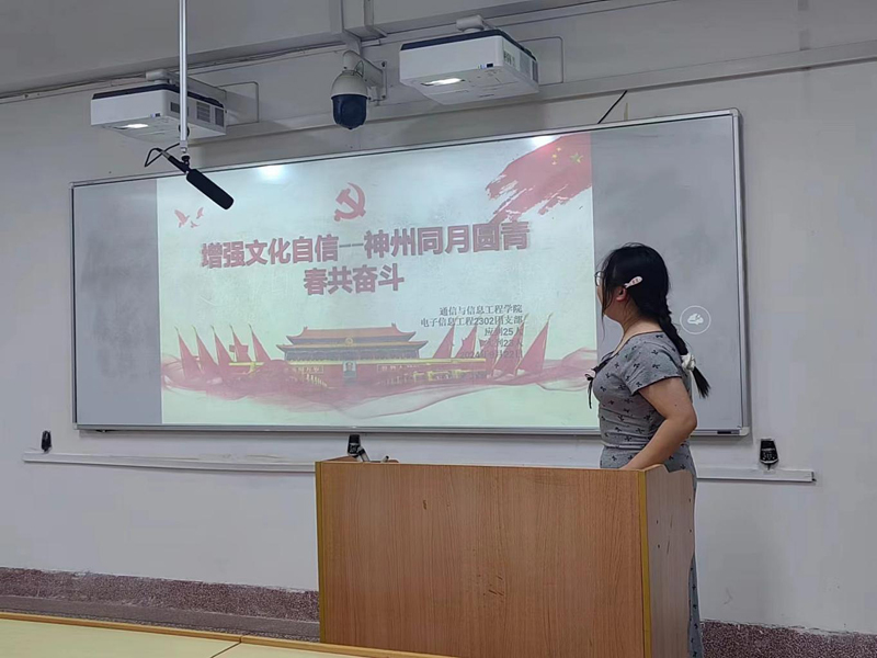 通过这次团日让我感受到文化自信,如同夜空中最亮的星,指引着中华民族穿越历史的长河,璀璨不息。它根植于五千年文明的沃土之中,是我们民族精神的脊梁,是每一位炎黄子孙心中不灭的火焰。在团日活动中,我们通过诗词歌赋、古典文学的温习,仿佛能触摸到那些光辉岁月中先贤们的智慧与风骨,这份厚重让我们的文化自信愈加坚定。而“神州同月圆”不仅仅是一幅幅团圆的美好画面,它更寓意着无论身处何方,中华儿女心向一处,共同期盼国家的繁荣昌盛。