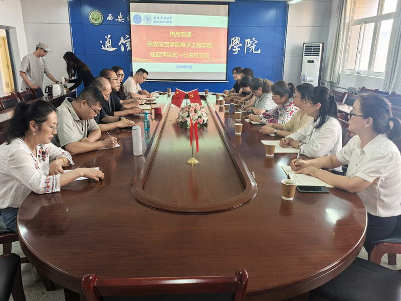 9月26日下午,西安航空学院电子工程学院院长杨亚萍教授一行8人到我们调研学科专业建设及培养方案修订事宜,王安义院长、韩晓冰教授、通信工程系主任徐艳红老师、智能科学与技术专业贺顺老师、物联网工程专业王斌老师、学院学科及研究生培养办公室主任曹悦老师,教学科研办公室主任苗蓓蕾老师参加了座谈。