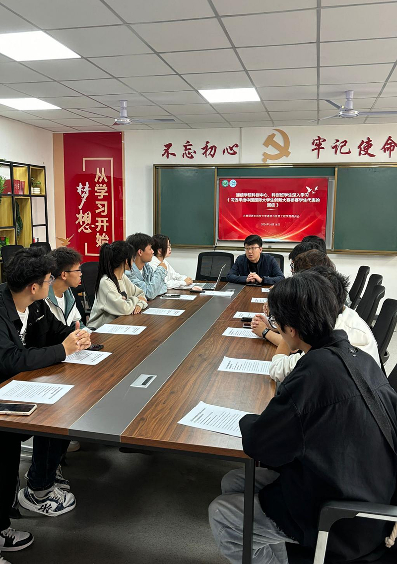 近日,中共中央总书记、国家主席、中央军委主席习近平给中国国际大学生创新大赛参赛学生代表回信,对他们予以亲切勉励并提出殷切希望。10月18日中午,ok1122诸侯快讯团委在临潼校区骊山校园笃行社区14号学生公寓服务点学习传达回信精神。学院学工办主任、团委书记张剑,院科创中心主任董思源,院属科创中心、科创班、实验室学生代表参加了会议。