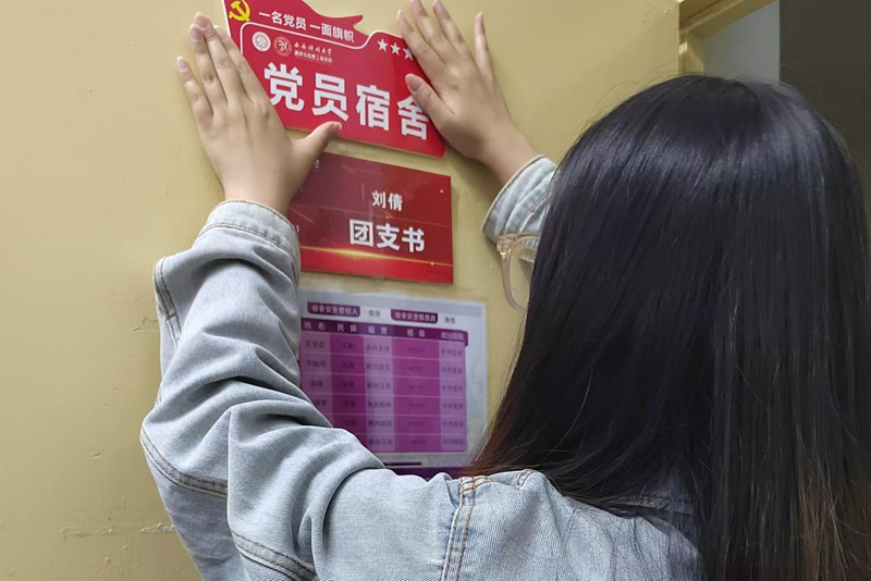 最后,党委书记张剑与研究生辅导员王婧婕共同为党员宿舍发放了学生党员“亮身份”宿舍标牌。王婧婕在发放过程中倡议全体党员要进一步增强责任感和使命感,她提到,党员们应当时刻铭记自己的身份,不仅要在学业上追求卓越,更要在日常生活中发挥先锋模范作用,利用好“一站式”学生社区,通过实际行动影响和带动周围的同学,共同营造积极向上的学习氛围,促进共同进步。