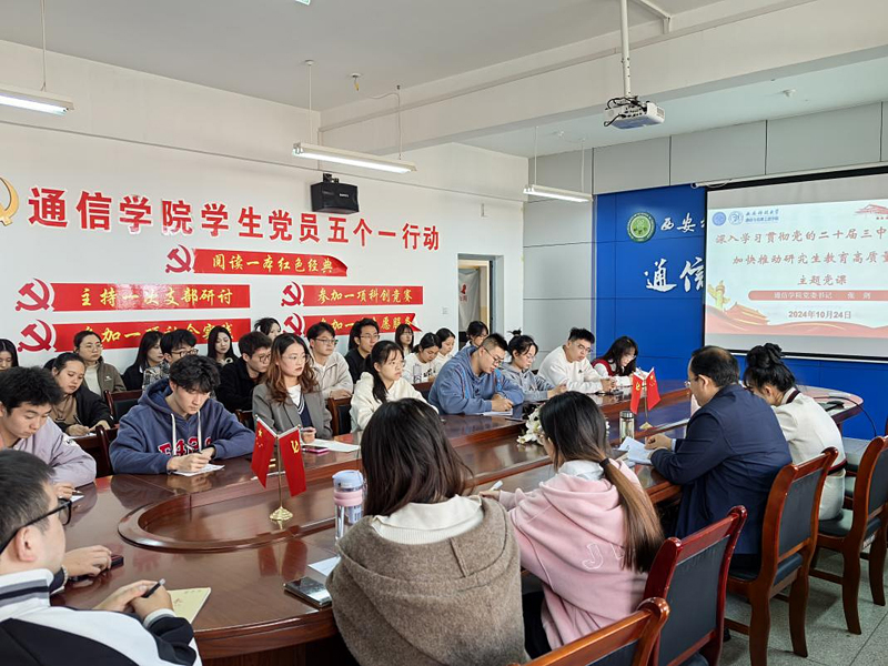 为深入学习贯彻党的二十届三中全会精神,深刻领会全会的重大意义,推动全会精神落地生根,10月24日下午,ok1122诸侯快讯党委书记张剑在16教318会议室,以《深入学习贯彻党的二十届三中全会精神 加快推动研究生教育高质量发展》为题讲授专题党课。研究生辅导员王婧婕及2023级研究生党支部全体党员参加党课学习。