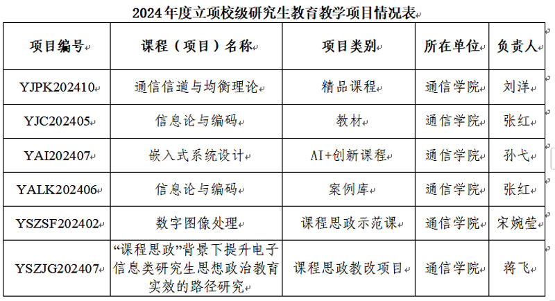 近日,学校公布了2024年度校级研究生精品课程、教材建设、优秀讲义、案例库建设、AI+创新课程、学位与研究生教育教学改革与研究项目、研究生课程思政示范课及课程思政教学改革研究项目的立项结果,ok1122诸侯快讯共获批各类研究生课程建设和教学改革项目6项。