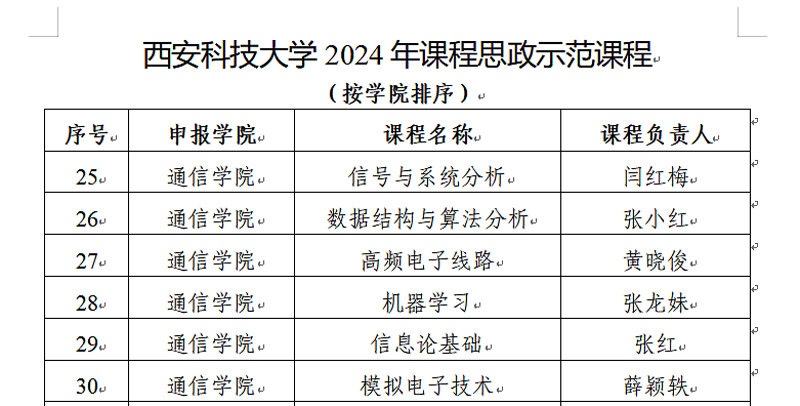 近期,学校公布了2024年课程思政示范课程评审结果,我们《信号与系统分析》、《数据结构与算法分析》、《高频电子线路》、《机器学习》、《信息论基础》、《模拟电子技术》等6门课程获批,我们课程思政建设又添新成果。