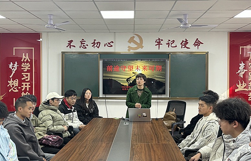 辅导员闵雷霆老师首先向大家介绍了2024级本科生基本情况,随后李昭慧老师介绍了优秀学生代表情况并主持经验分享。