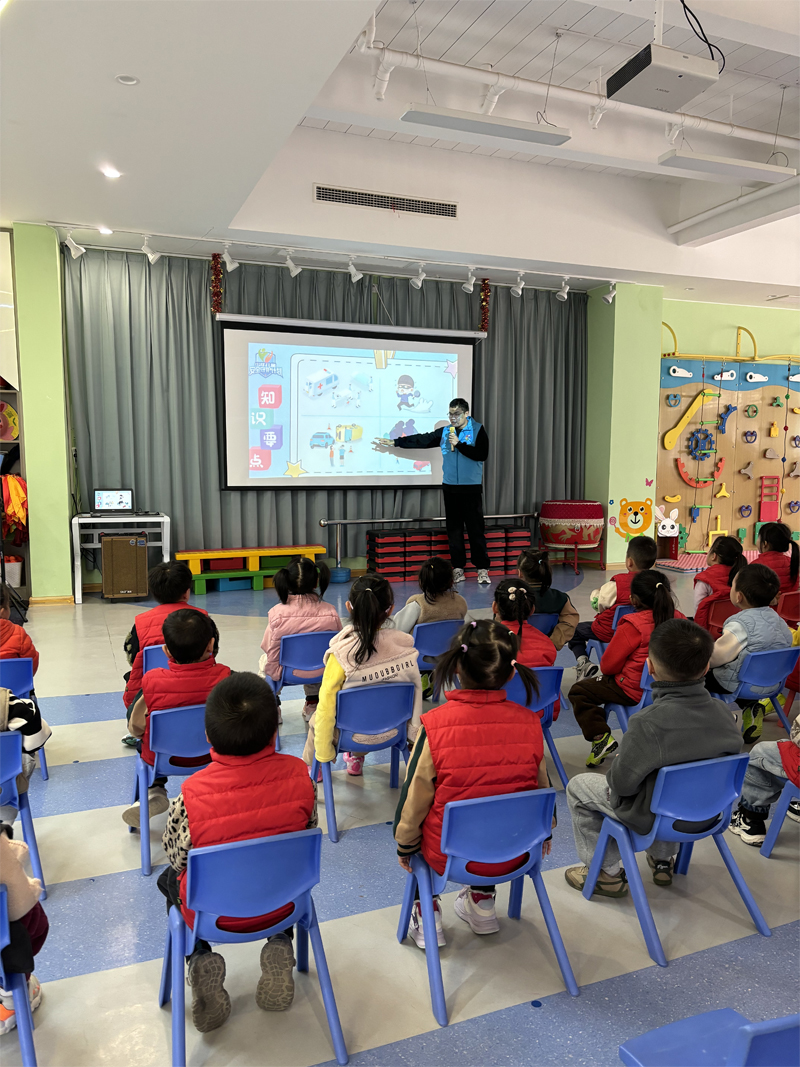 踏入幼儿园教室,志愿者们开启了趣味教学之旅,用亲切的话语讲述今天的内容。首先是志愿者石梦阳向小朋友们普及应急电话,在宣讲过程中,小朋友们能迅速准确回答出提问的问题,证明了他们已将急救观念内化于心;其次是志愿者高佳怡用通俗易懂的小故事顺势引出反恐防暴话题,让反恐防暴意识悄然扎根孩子脑海。这次宣讲不仅提高了小朋友们对急救知识和防暴知识的吸收和记忆,也展现了通院青年的青春担当。