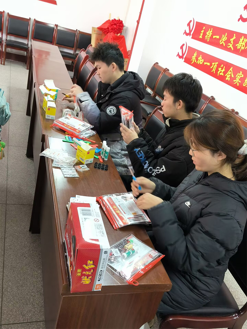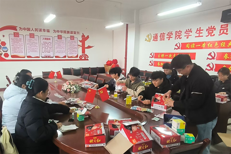 礼包中内容丰富多样,既包含实用的学习用品,如胶棒、小刀、文具套装等,还特别附上了和学院64期初级党校学员联动精心准备的考研寄语贺卡,每一张贺卡上都写满了学院对考研学子的鼓励与祝福,传递着学院与同学们并肩作战、共同前行的决心与信念。在筹备过程中,志愿者们发挥了重要作用。他们分工明确,耐心细致,有条不紊地将每一件礼品装入袋中,这些礼品不仅是一份物质的支持,更是一份心意的传播。