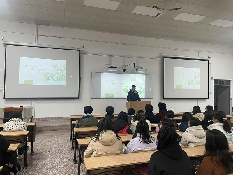 优良学风是学习的基石,关乎同学们未来的职业发展与个人成长。张老师通过列举学院过往优秀学子的成功案例,向同学们展示了良好学风如何助力他们在学术道路上稳步前行。在谈及如何营造良好学风时,张老师鼓励同学们树立明确的学习目标,合理规划学习时间,养成主动学习的习惯。
