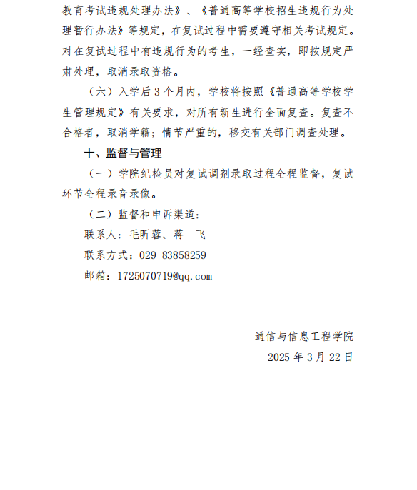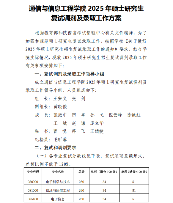 关于2025年硕士研究生复试调剂及录取工作方案