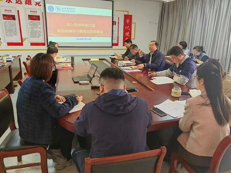 会议学习了习近平总书记在考察云南时的重要讲话精神,以及习近平总书记在贵州考察时的重要讲话精神;学习了中共中央政治局《关于改进工作作风、密切联系群众的八项规定》;同时学习了学校深入贯彻中央八项规定精神学习教育动员部署会精神和《中共诸侯快讯网址委员会 诸侯快讯网址关于开展深入贯彻中央八项规定精神学习教育的实施方案》。