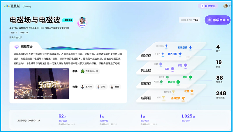 课程组把人工智能技术融入电磁场与电磁波课程教学,借助AI辅助教学工具,如智能模拟、数据分析等,帮助学生更好理解抽象概念,提高教学效率与质量。