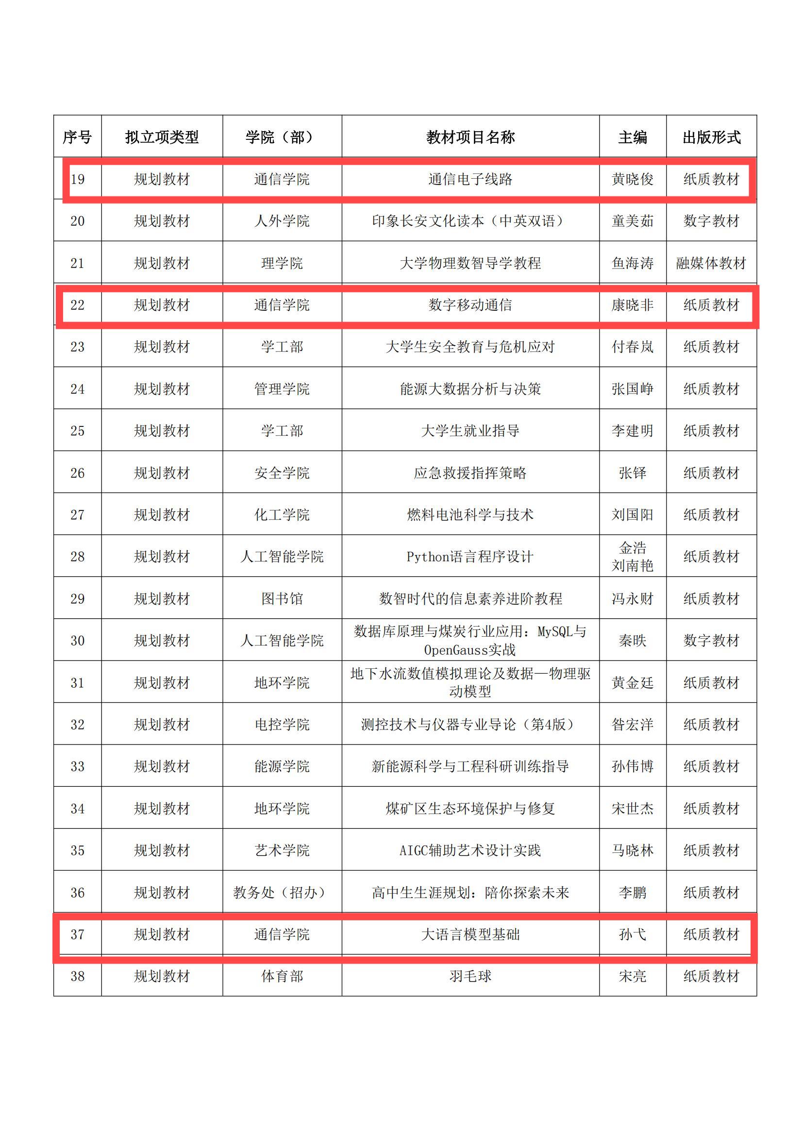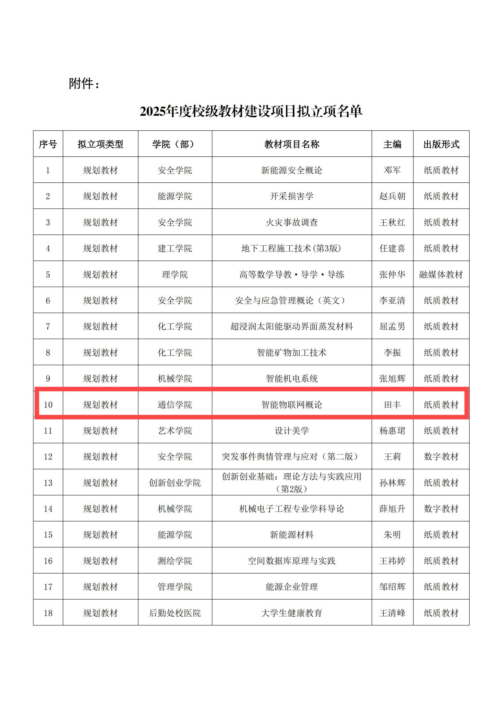 近日,学校公布了2025年度校级教材建设项目立项结果,我们共有7项教材项目成功立项,其中规划教材4项、实验(实习、设计)指导书3项,覆盖智能物联网、通信技术、人工智能等前沿领域,展现学院在教学创新与教材建设中的显著成效。