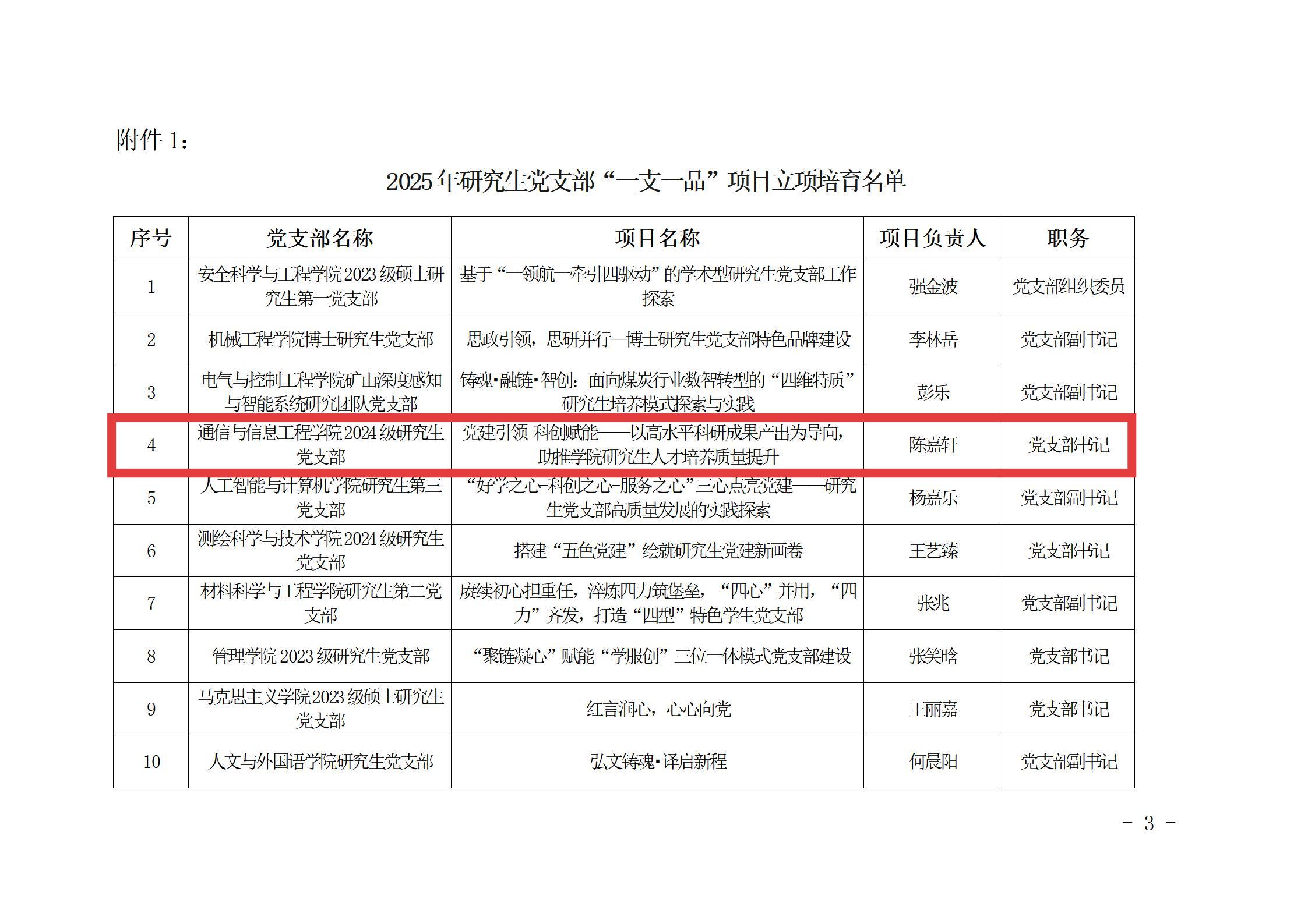近期,学校公布了2024年研究生党支部“一支一品”创建培育验收结果和拟立项名单。我们2023级研究生党支部项目《铸魂 赋能 聚力,打造党研双融合创新党支部》顺利通过结项验收,2022级中共党员张巍获“2024年研究生党员标兵”。2024级研究生党支部项目《党建引领 科创赋能——以高水平科研成果产出为导向,助推学院研究生人才培养质量提升》获批立项,我们研究生党支部实现连续三年获批研究生党支部“一支一品”项目。