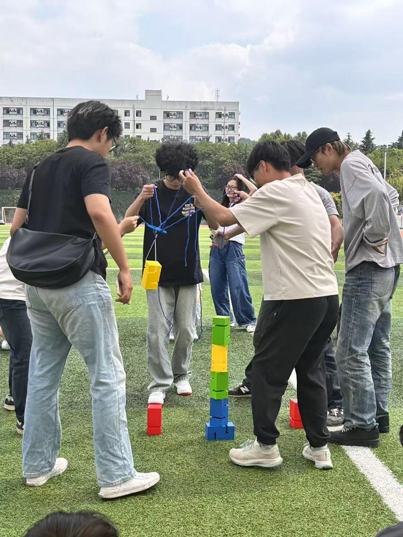 随着发令声响,四大趣味赛事依次展开:"不要做挑战"考验同学们的临场应变能力,"合力搭建"彰显团队协作智慧,"踢毽子比赛"展现运动活力,"剧本演绎"激发无限创意。各宿舍成员齐心协力、奋勇争先,赛场上加油助威声、欢快笑语声交织,氛围热烈高涨。