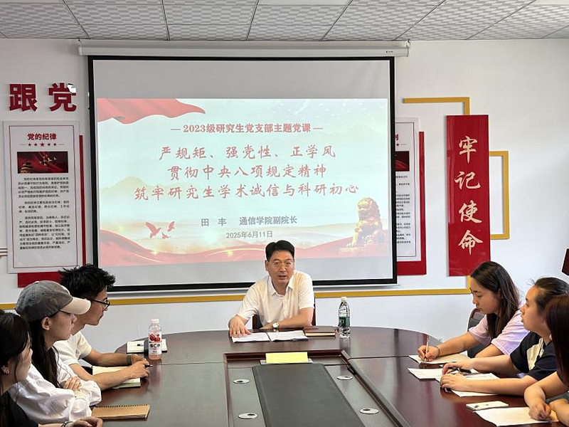 2025年6月11日,ok1122诸侯快讯副院长田丰以《贯彻中央八项规定精神 筑牢研究生学术诚信与科研初心》为题,为2023级研究生党支部讲授专题党课,支部全体党员共计60余人参加。