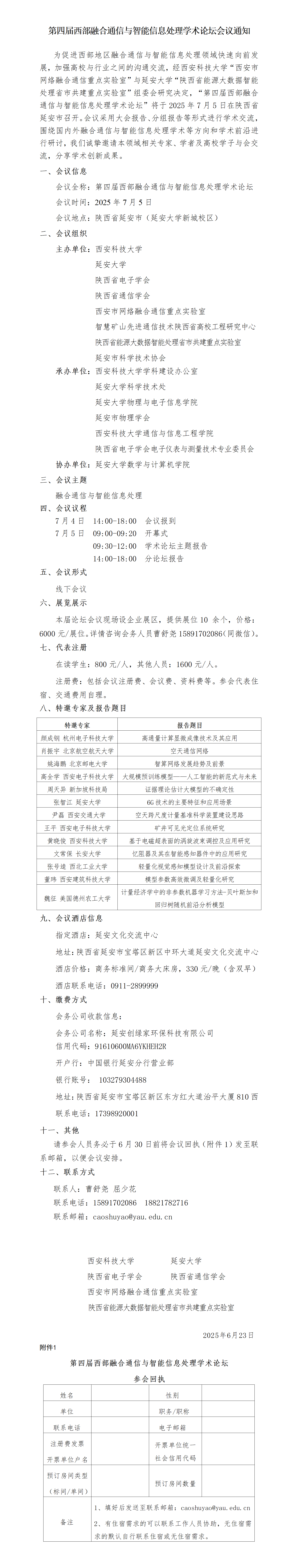 第四届西部融合通信与智能信息处理学术论坛会议通知 2025-06-25 2426 嘉轩 附件1:第四届西部融合通信与智能信息处理学术论坛参会回执/UploadFile/file/202506/20250625112035_8881.doc