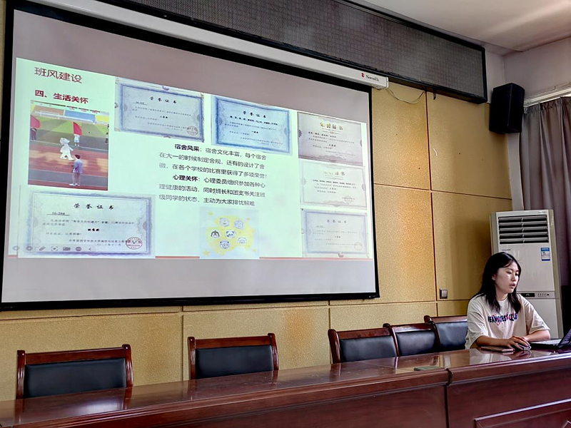 汇报过程中,各班各展所长,生动呈现了班级合力与青春活力,从班风学风、班级文化、成绩荣誉等方面全方位勾勒了独特的班级群像。有班级以文体活动与志愿服务为双引擎,以清晰的逻辑、生动的画面展现班级的独特风采,传递“以行践善”的班级精神;有班级强化多元发展,既展示学科竞赛的突破,又展示文艺展演的精彩,全方位呈现班级成长全景;还有班级聚焦学风建设,介绍了英语四级一次性(第一次四级考试)通过率60%背后的学习机制和帮扶模式,讲述了“共学共进”的成长生态。各班从班级整体成绩荣誉的梳理到个人竞赛获奖的分享,从特色活动的回顾到学习生活问题的剖析,生动、系统、全面地展示了班级成长轨迹、创建成果和未来规划。