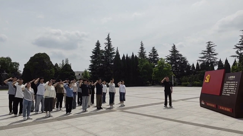 松柏环绕的烈士纪念碑前,全体党员庄严肃立,面向鲜红党旗,高举右拳,重温入党誓词。“我志愿加入中国共产党”铿锵有力的誓言在苍松翠柏间久久回荡,表达了对党的无限忠诚和为党的事业奋斗终身的坚定信念,深刻体悟共产党人的初心使命与责任担当。
