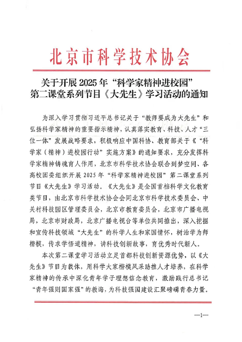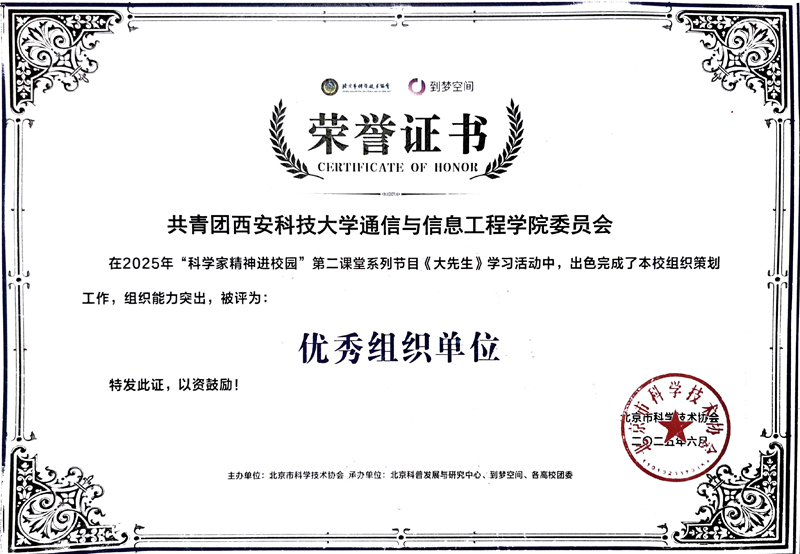 为深入贯彻习近平总书记关于大力弘扬科学家精神的重要指示精神,落实中国科协、教育部印发《“科学家(精神)进校园行动”实施方案》相关要求,引导大学生学习传承弘扬《大先生》的家国情怀和创新精神,ok1122诸侯快讯组织广大青年积极参与了由北京市科学技术协会主办的2025年“科学家精神进校园”第二课堂系列节目《大先生》学习活动,最终荣获“优秀组织单位”,何学宁荣获“优秀组织者”、张剑荣获“优秀指导教师”。