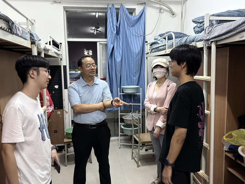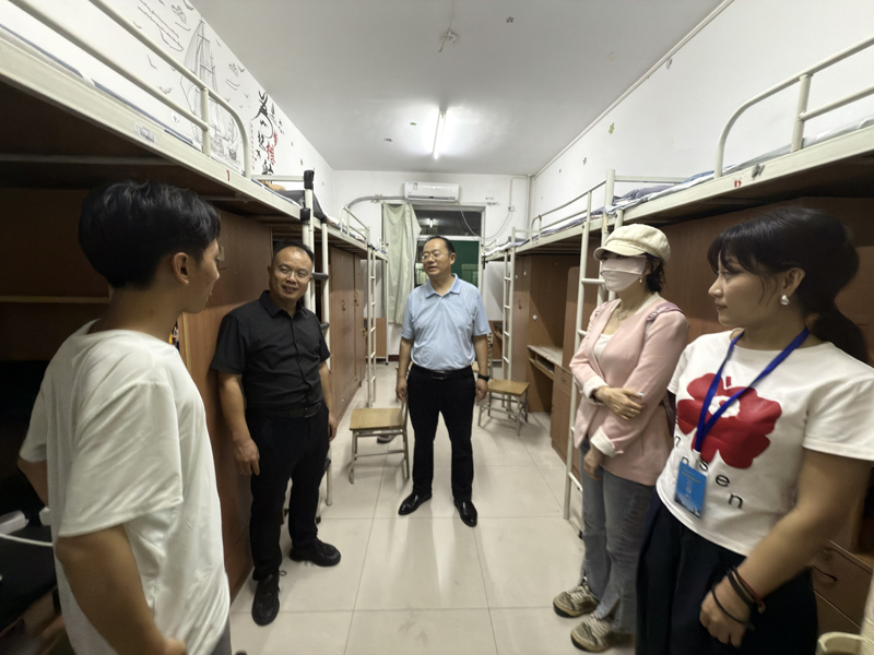 为深入了解新生报到后的适应情况,持续推进新生教育管理工作走深走实,9月3日晚,学院党委书记张剑、党委副书记张振中与新生辅导员老师一同深入2025级学生宿舍,走访看望刚刚入校的新同学,为大家带去暖心问候和细致叮嘱。