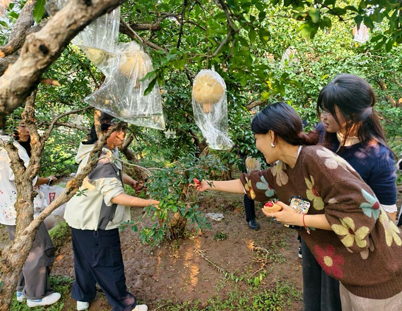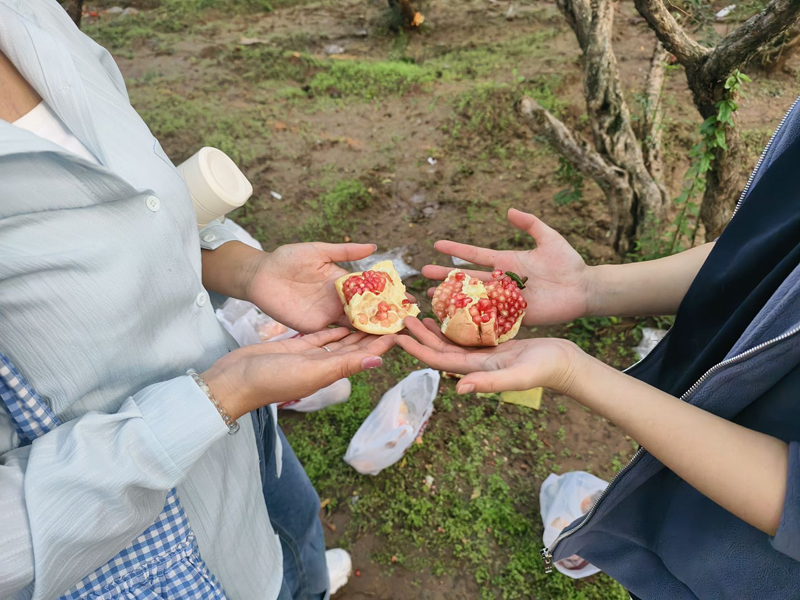 随后,师生们前往校园石榴园开展劳动实践。在秋日暖阳下,各族师生团结协作,有序采摘。一颗颗饱满的石榴,象征着各族师生紧密相连;一次次默契的配合,展现着民族团结的强大力量。活动现场气氛热烈,师生们在劳动交流中深化了对民族团结的理解。