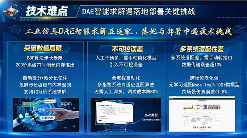 此次获奖背后,是学院师生聚焦“卡脖子”技术的协同攻坚。“此前在工业仿真软件的DAE求解方面,国外技术起步早、应用广,我们就是利用人工智能赋能工业仿真软件求解,努力啃下‘硬骨头’。”项目指导教师张烨的话道出了研究的初心。团队在调研中发现,我国工业领域常用的仿真软件内核求解在特定场景下适配性不足——这正是赛事发榜企业提出的核心痛点。“最初一个月,连基础算法框架都搭建不起来。”项目负责人董思源回忆,团队曾因求解精度不足连续推翻三套方案,在实验室度过了数十个不眠之夜。整个暑假团队创新性提出分类型智能求解方案:针对指数1DAE系统,采用嵌入物理规律的PINN神经网络,实现免离散化求解且误差<0.3%;针对指数2系统,设计PINN约束传播算法,求解效率提升27倍,功率波动误差从12%降至1.8%;针对指数≥3的高次系统,研发LSTM微分记忆体算法,通过缓存多阶导数并动态调整权重,将精馏塔仿真误差从23%降至0.2%。在终审答辩环节,该技术表现惊艳,赢得发榜企业和评审专家的一致认可:“真正实现了核心技术的自主可控。”