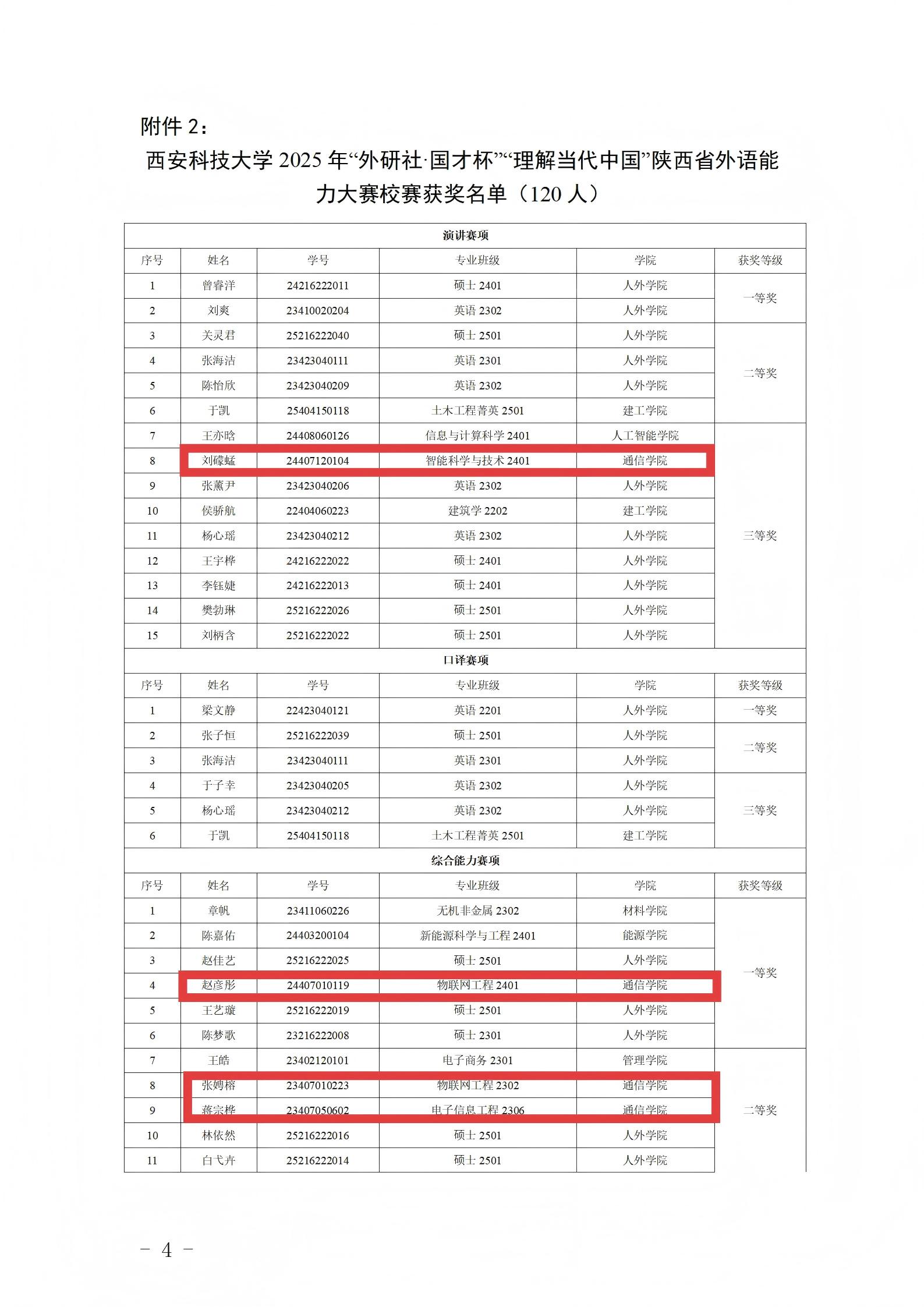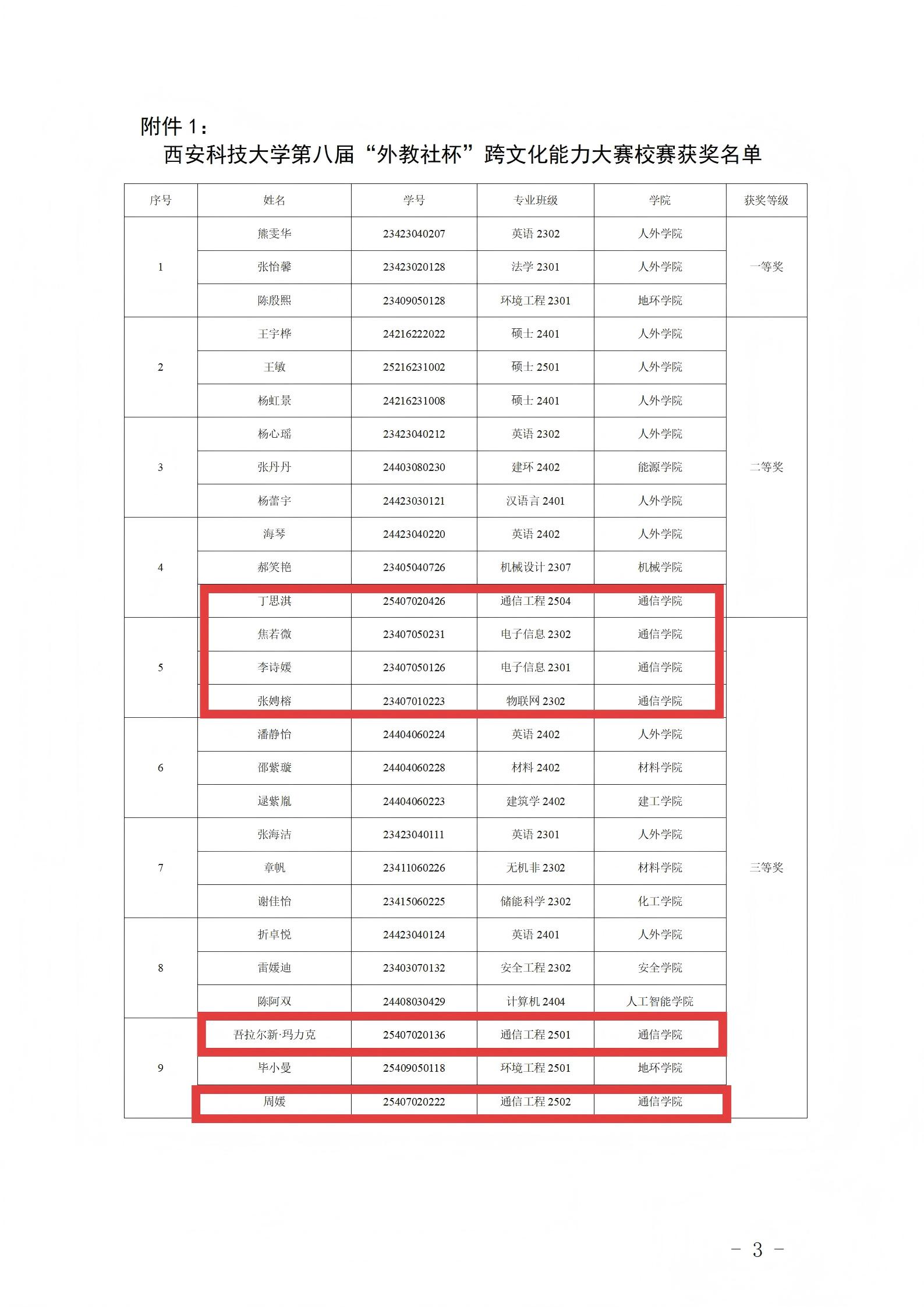 近日,学校公布了我们第八届“外教社杯”全国高校学生跨文化能力大赛校赛获奖名单、2025年“外研社·国才杯”“理解当代中国”陕西省外语能力大赛校赛获奖名单、第二届大学生能源经济学术创意大赛获奖名单。通院青年表现优异,5人荣获一等奖、9人荣获二等奖、11人荣获三等奖。