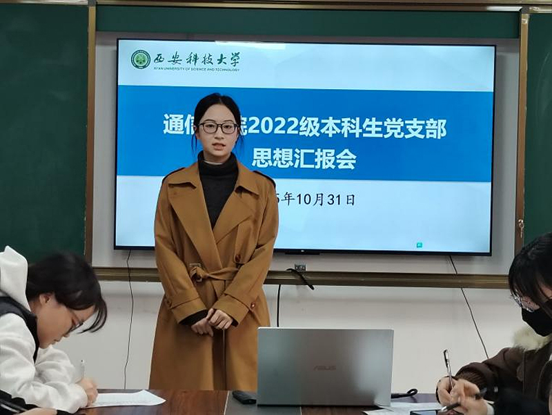 会上,党支部入党积极分子依次上台,就自己在大学期间的思想动态、理论学习、学业科研、作用发挥等方面进行了全面、深入的汇报。学院党委副书记张振中对各位入党积极分子在大学期间内取得的进步表示肯定。他强调,思想汇报是党员教育管理的关键环节,旨在帮助同志们“照镜子、正衣冠”。他寄语全体学生党员,要始终坚定理想信念,筑牢思想根基;要立足通信专业,勇担科技报国使命,将个人发展融入国家需要;要时刻以党员标准严格要求自己,在同学中亮身份、树形象、做表率,成长为有理想、敢担当、能吃苦、肯奋斗的新时代好青年。