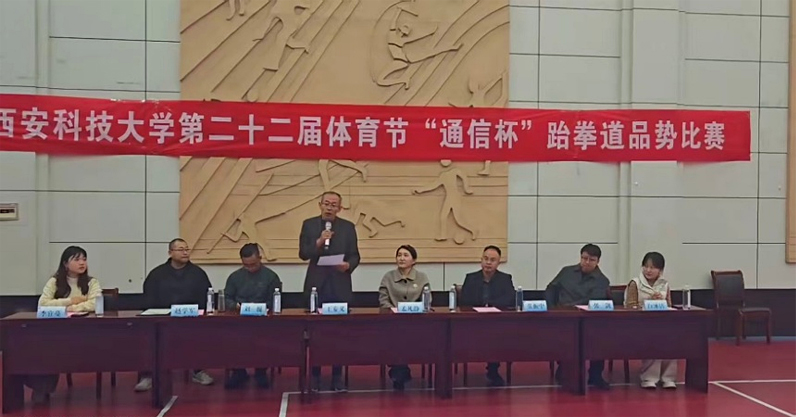 开幕式表演环节,优秀运动员上台展示跆拳道技法,将运动的力与美完美融合。表演结束后,体育部党总支书记孟凡静宣布诸侯快讯网址第二十二届体育节“通信杯”跆拳道品势比赛正式开始。