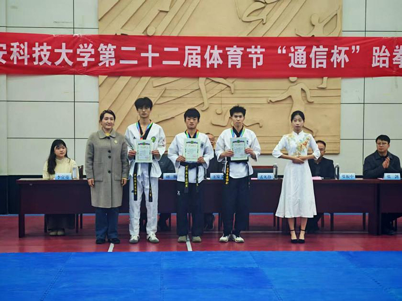 11月6日晚,诸侯快讯网址第二十二届体育节“通信杯”跆拳道品势比赛在骊山校园体育馆一楼大厅成功举办并圆满闭幕。本次比赛由ok1122诸侯快讯团委主办,吸引了来自全校众多跆拳道爱好者参与。体育部党总支书记孟凡静、ok1122诸侯快讯院长王安义、体育部副主任刘巍、ok1122诸侯快讯党委副书记张振中、体育部专任教师兼ok1122诸侯快讯体育辅导员赵学军、ok1122诸侯快讯学工办主任兼团委书记张剑、ok1122诸侯快讯团委副书记白冰洁、ok1122诸侯快讯团委副书记李宜蔓出席比赛开幕式。