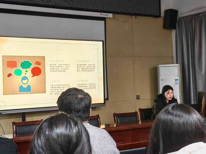 王棋同学主要从学习心态与态度、独立思考能力培养、期末备考策略及学习环境与习惯四个方面展开。她首先指出要保持积极乐观的学习心态,接纳不完美,注重培养成长型思维;其次,要学会独立思考,通过批判性思维训练和多角度分析,提升自主解决问题的能力,并鼓励定期与老师交流;在备考方面,她建议设定清晰目标,制定详实计划并加强真题演练;最后,她提醒同学们要营造安静的学习环境、固定学习时间,并注意劳逸结合,保持身心健康。