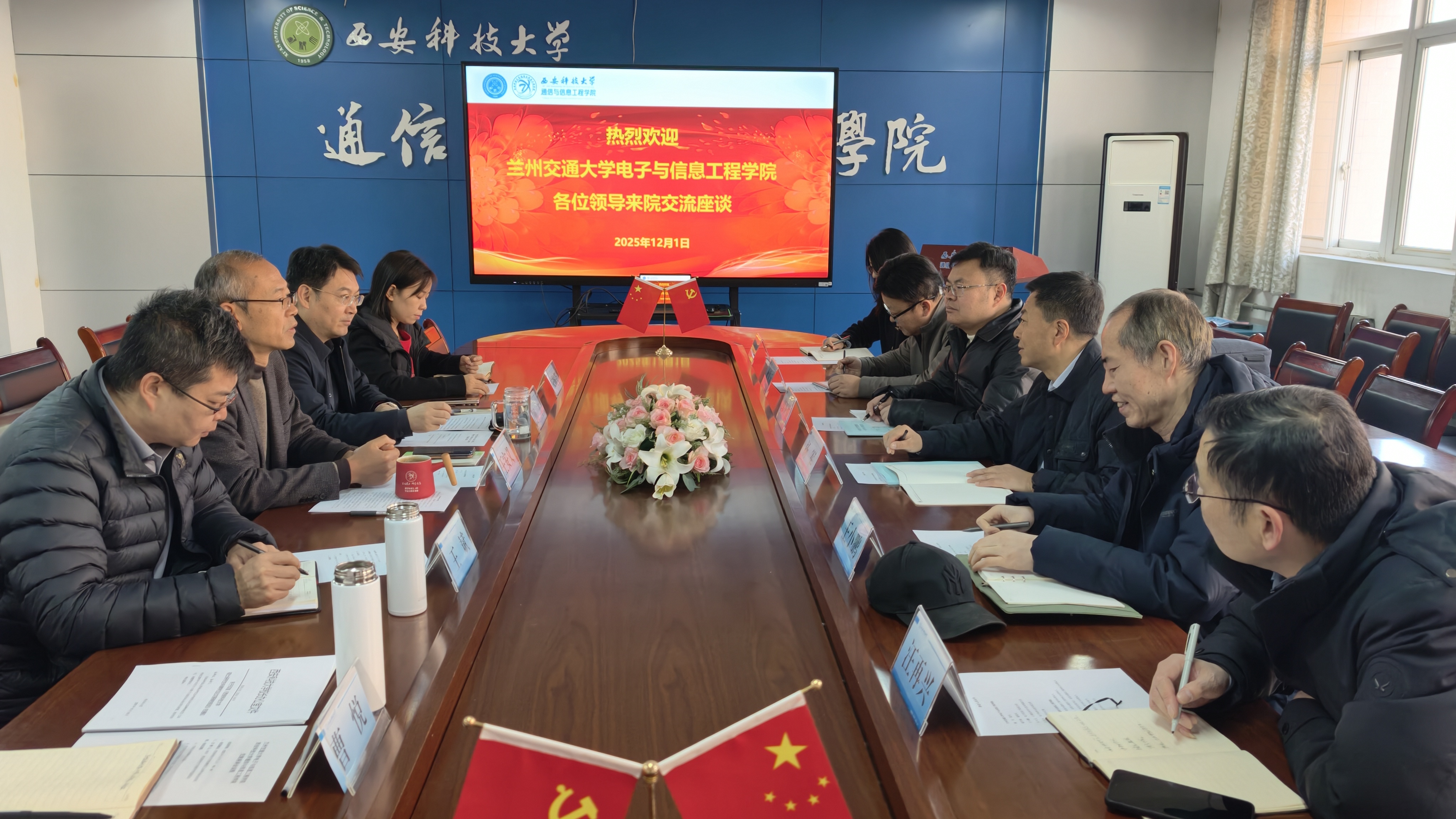 12月1日上午,兰州交通大学电子与信息工程学院院长杨军、副院长邬开俊、相关系部负责人、骨干教师代表来我们开展调研交流。我们院长王安义、副院长田丰、信息与通信工程学科方向带头人、学科秘书参加座谈,座谈会由田丰副院长主持。