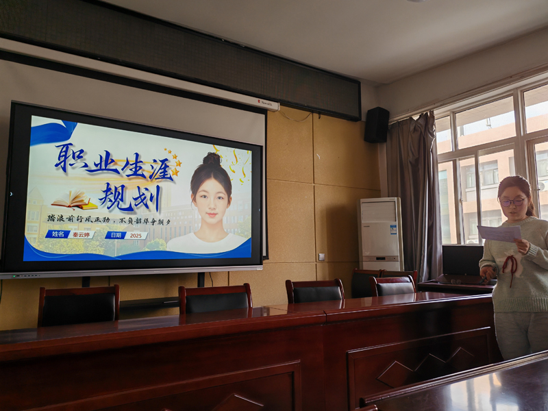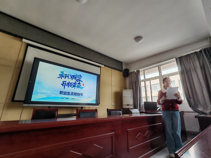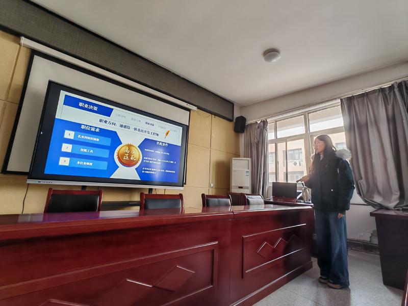 比赛现场,选手们以“我的职业蓝图”为核心,通过PPT展示、现场答辩的形式,从自我认知、职业分析、目标确立、路径设计、评估调整等方面,系统阐述了自己的职业规划。来自通信工程专业的张妙荣结合5G通信技术发展趋势,将职业目标定位为“通感算开发工程师”,详细分析了该岗位的能力需求,并制定了大学四年的技能提升计划,其清晰的逻辑和务实的规划获得评委一致认可。