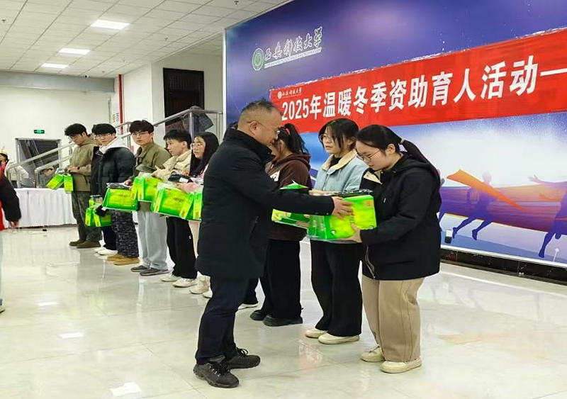 活动首先由校领导致辞并为学生代表发放“温暖冬季”生活慰问品,我们共有左思烨等5名学生代表由校领导现场为其发放了衣物等生活慰问品。活动第三项,由学院党委副书记张振中为学生代表发放了抽纸、手套等暖心生活用品。在为学生代表发放生活慰问品时,张振中详细询问学生需要并贴心叮嘱,领导和老师们的关怀问候,让学子们感受到的不仅是物资上的帮扶,更是学院大家庭的关爱与温暖。