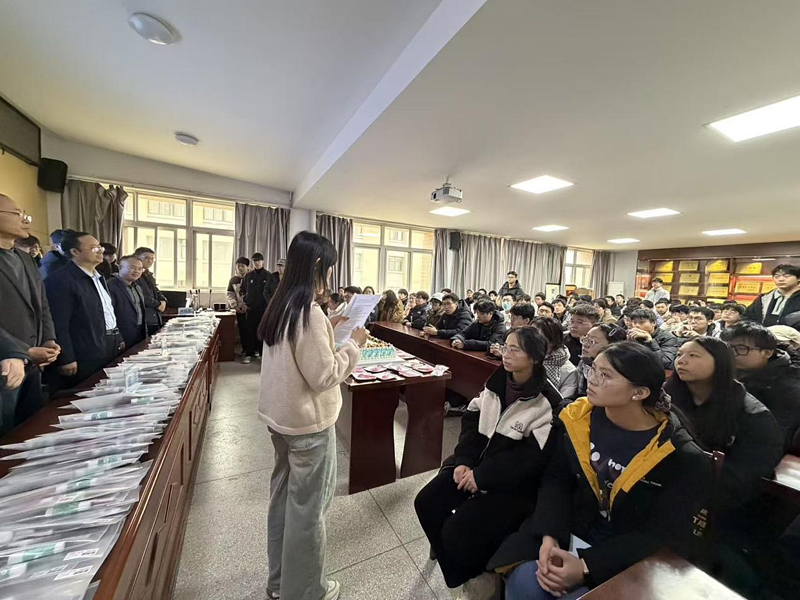 学院领导们为考研学生代表赠送考研加油礼包。这份沉甸甸的礼包承载着学院对学子们最真挚的祝福与深切期待,希望能为同学们的最后冲刺之路提供实用助力,陪伴大家度过这段紧张而充实的时光,让每一位学子都能感受到来自学院大家庭的温暖与支持。
